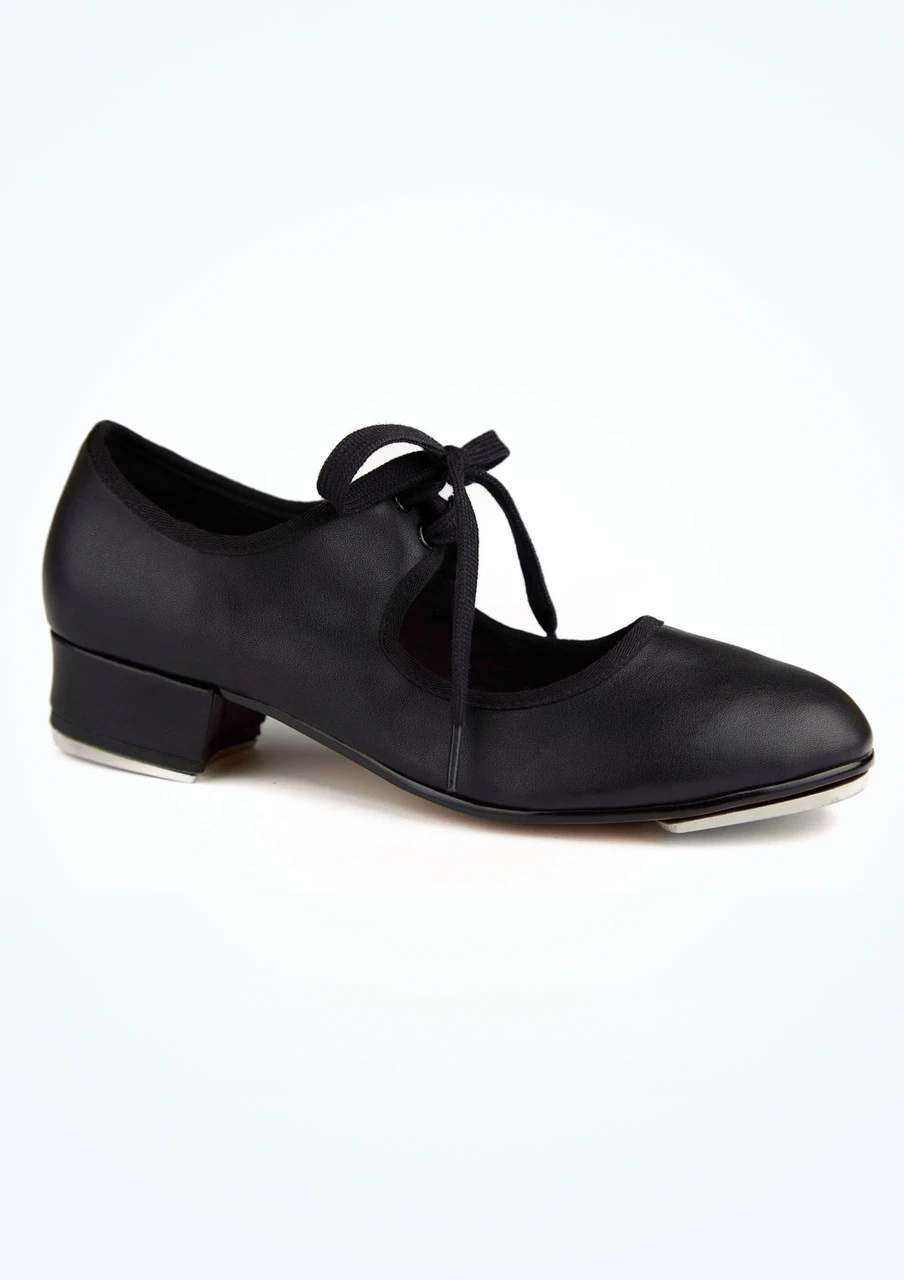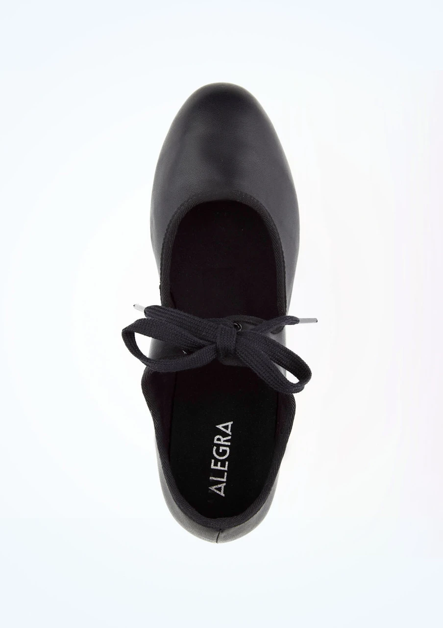 The Alegra tie front tap shoe. With a synthetic leather upper, 1” heel and tie front, the simple design of this shoe makes it great for dance practice and classes!