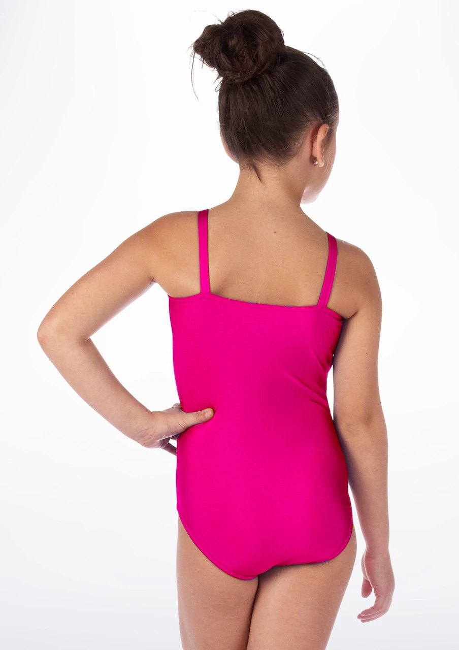 This Cleo leotard by Alegra is a beautiful middleground between simple and showstopper because of the classic camisole style being coupled with shiny Nylon stretch fabric. Under the stage lights, this leotard dazzles, making it the perfect show costume. With over 20 colours to choose from, you can find your school’s colours and have your troupe all looking identical.