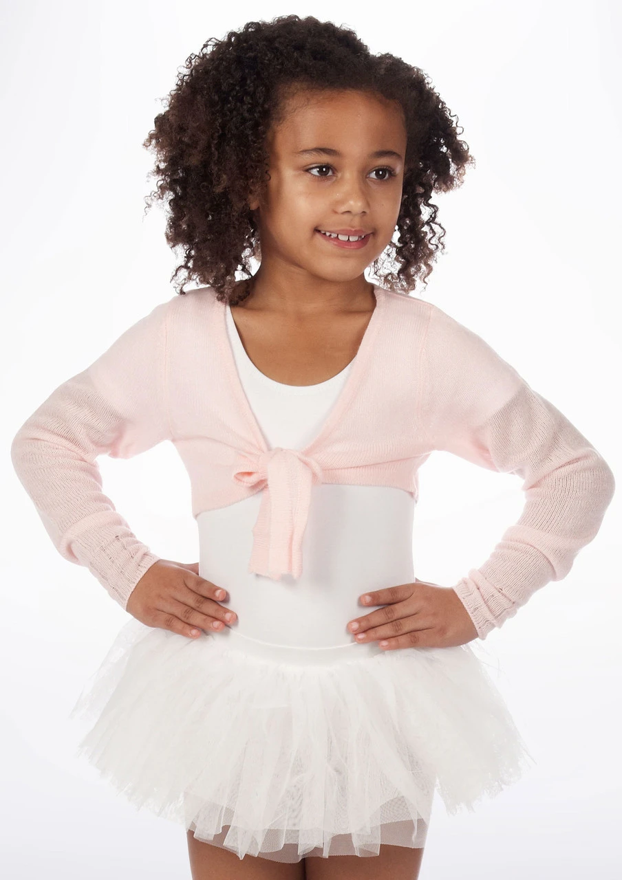 A must-have for winter from Bloch, this warm knitted cardigan is perfect over leotards. Soft cashmere feel knit, with full length arms, and a tie front.