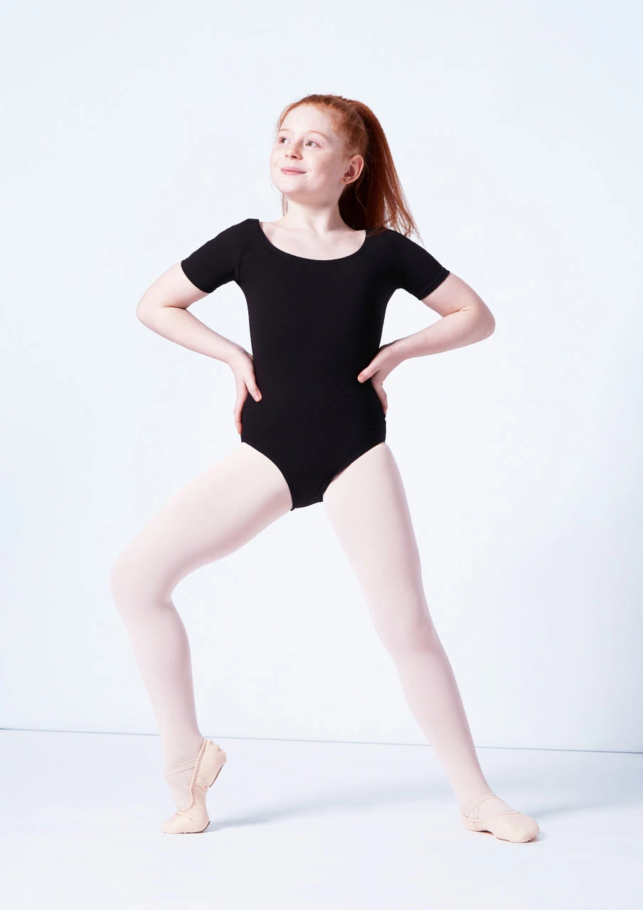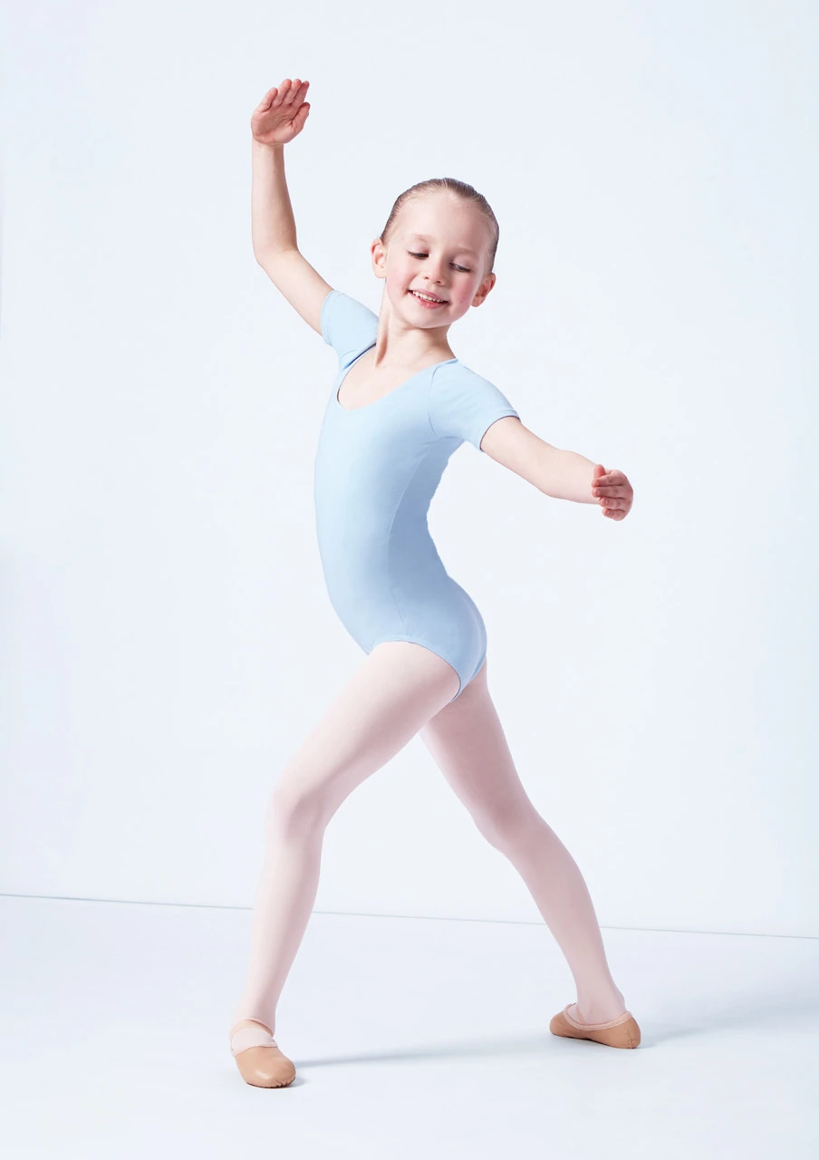 A basic style short sleeved leotard for ballet from the Capeizo Class Collection – suitable for examinations. Comfortable, supportive, and durable. Matching elasticated belt included.