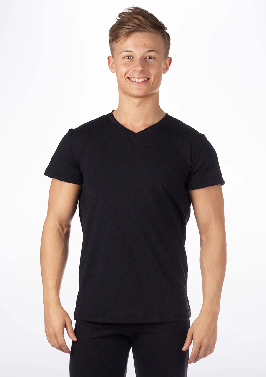Basic must-haves for male dancers, from Intermezzo, a v-neck short sleeved t-shirt, great for classes and rehearsals. The high performance fabric makes it suitable for any dance or fitness style.