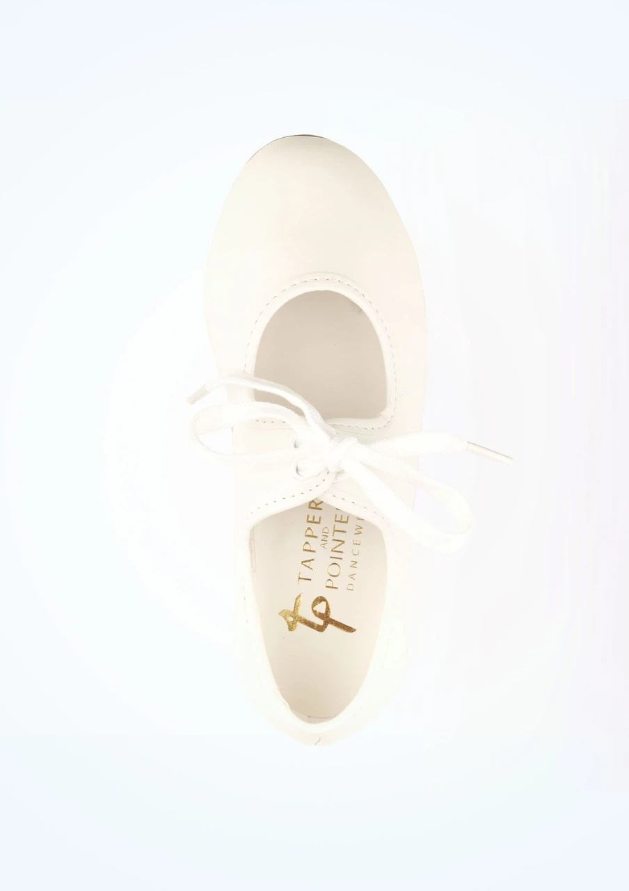 Tappers and Pointers white low 1” heel tap shoes are great for beginners. The recently revised design now suits wider feet too. (Heel taps sold separately).