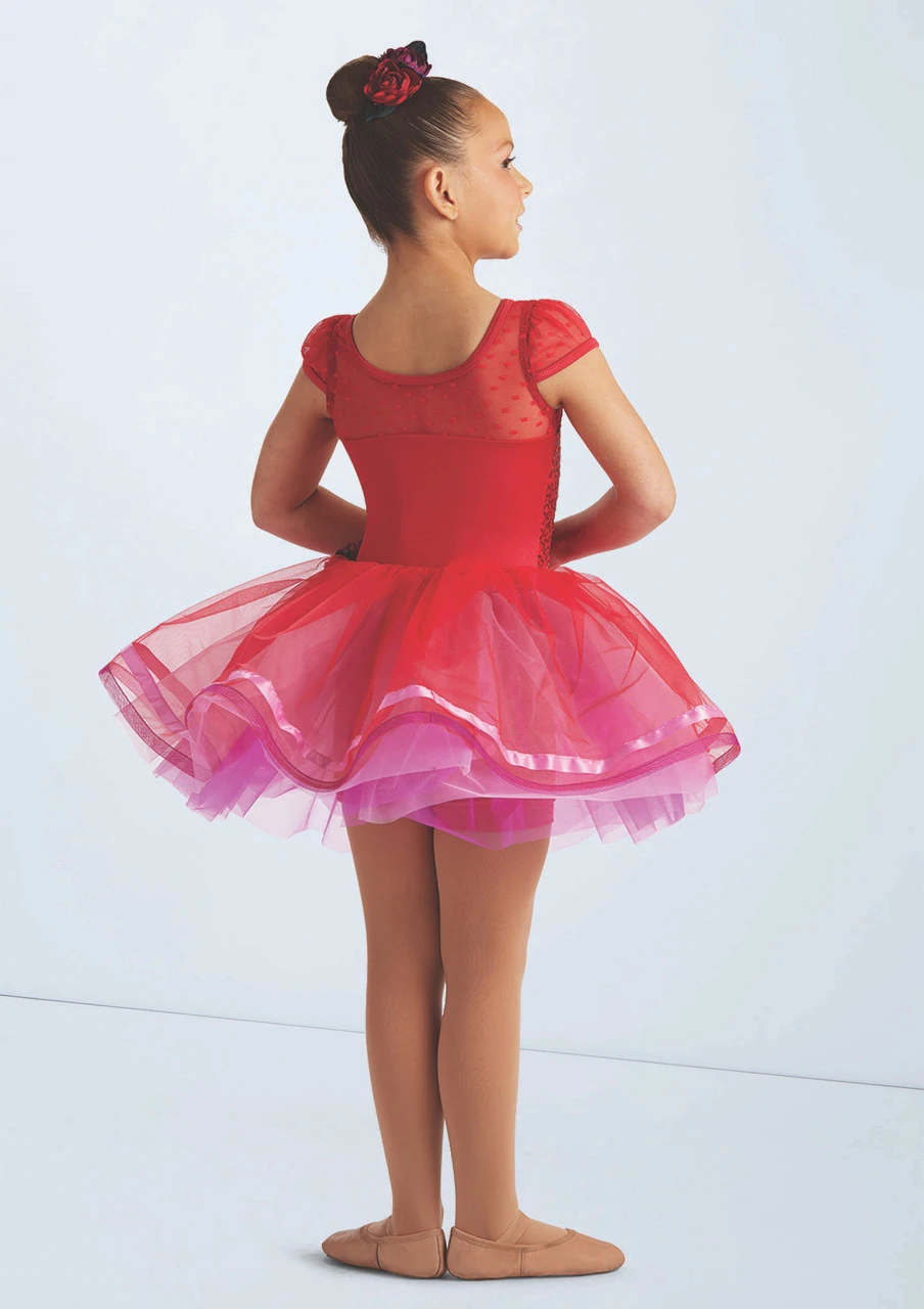 Three piece costume includes biketard, tutu and bubble skirt